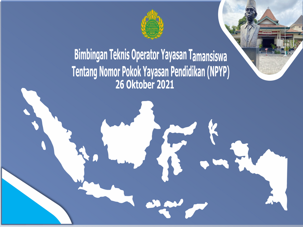 Majelis Luhur Persatuan Tamansiswa mengadakan acara Bimbingan Teknis Operator Yayasan Tamansiswa mengenai Nomor Pokok Yayasan Pendidikan/NPYP cabang Tamansiswa seluruh Indonesia pada Hari Selasa, 26 Oktober 2021 bertempat di Gedung Data Kompleks Pendapa Tamansiswa Yogyakarta. Sebagai penanggung jawab kegiatan adalah PLT Ketua Harian MLPTS Ki Prof. Drs. H. Pardimin, M.Pd., Ph.D.